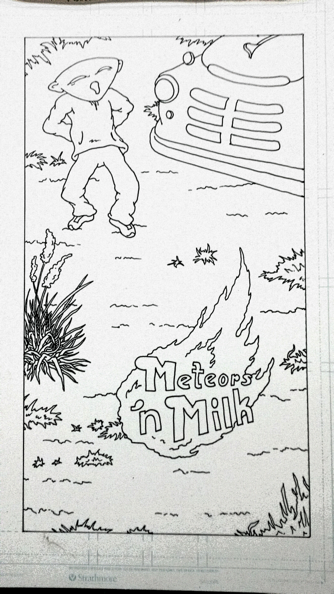 So as we await issue #1 I have begun work on issue #2 and the image at the end of this post is the in progress title page. Now for those of you new to the site and the world of Meteors n Milk here is a brief description of the debut issue: