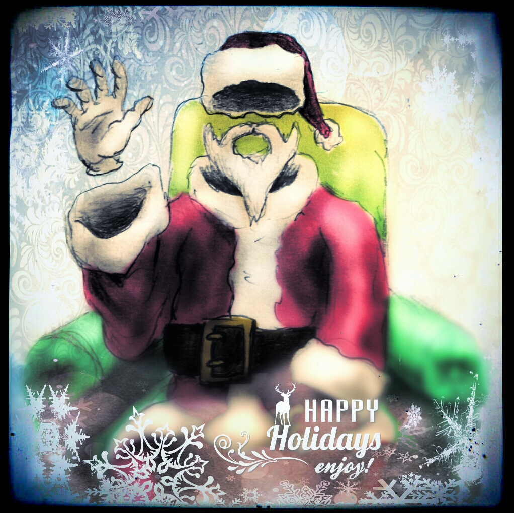 Advent of the Archetypes ended yesterday but in the spirit of the literary tale I thought I would bring you a classic character dressed a Santa. The spirit of Santa I believe is far more important than who wears the suit or where they come from or any backstory whatseover. In the end it is about giving to others and spreading joy to see a smile come to the faces that honestly need them most. SO……. here is the invisible man as your favorite jolly red suited fat man. Hey maybe that is why he is so illusive. It makes sense doesn’t it?