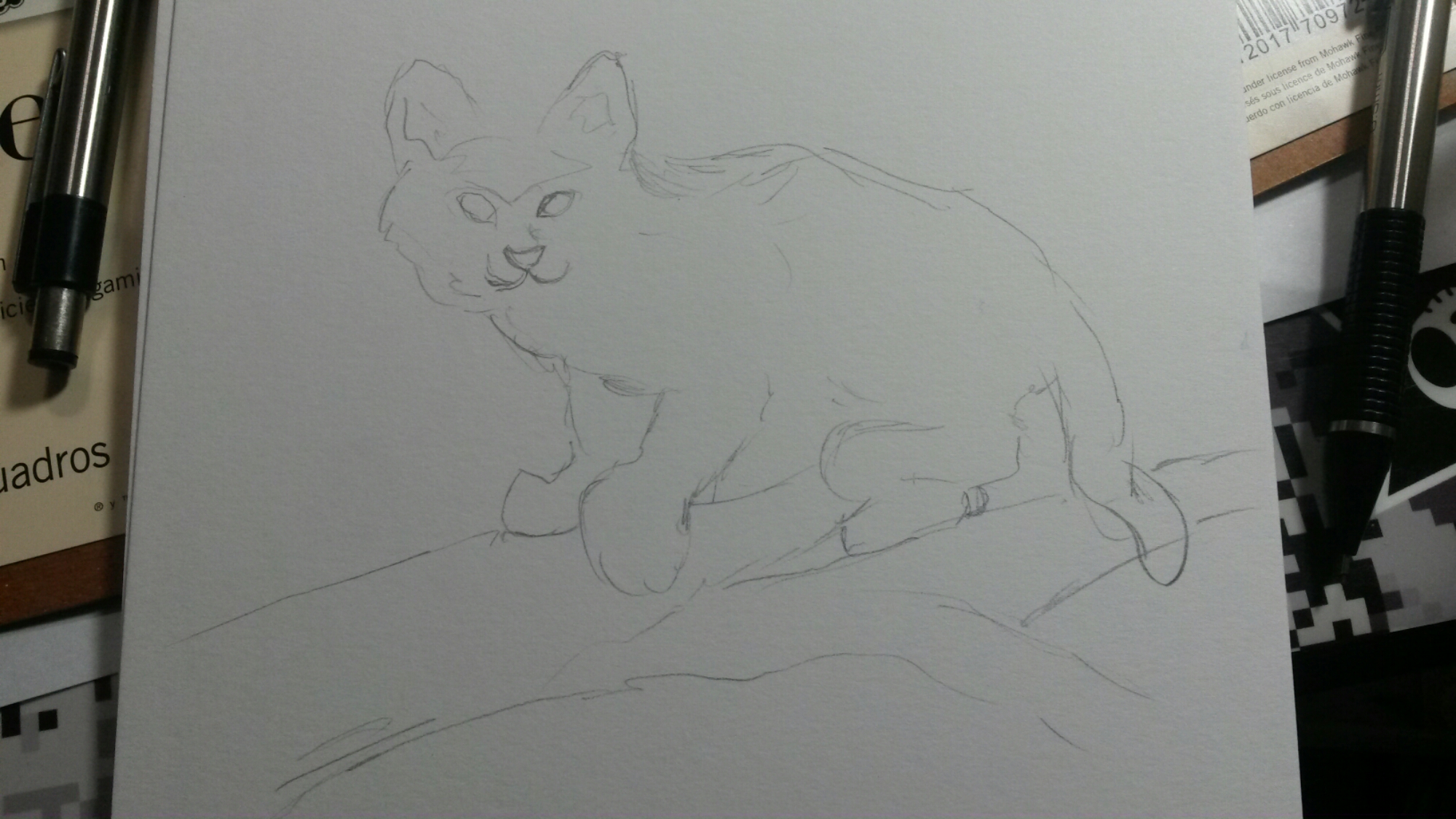 These along with some possible action figures help me really capture the more natural poses. I can point out the images I didn’t use a model with and that is because they tend to feel more stiff and may have errors as well. This is often how someone ends up with a limb a lot longer than the other. So once I have the drawing in mind I do a rough outline sketch to get the proportions in place. So let’s start with the Cheshire Cat here.