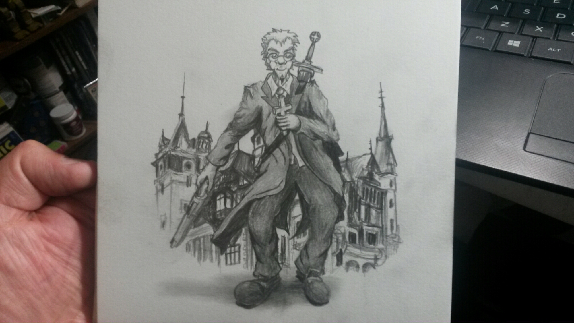 Next we do the detail and shading and we get the drawing to this stage… (more or less a relatively finished drawing)