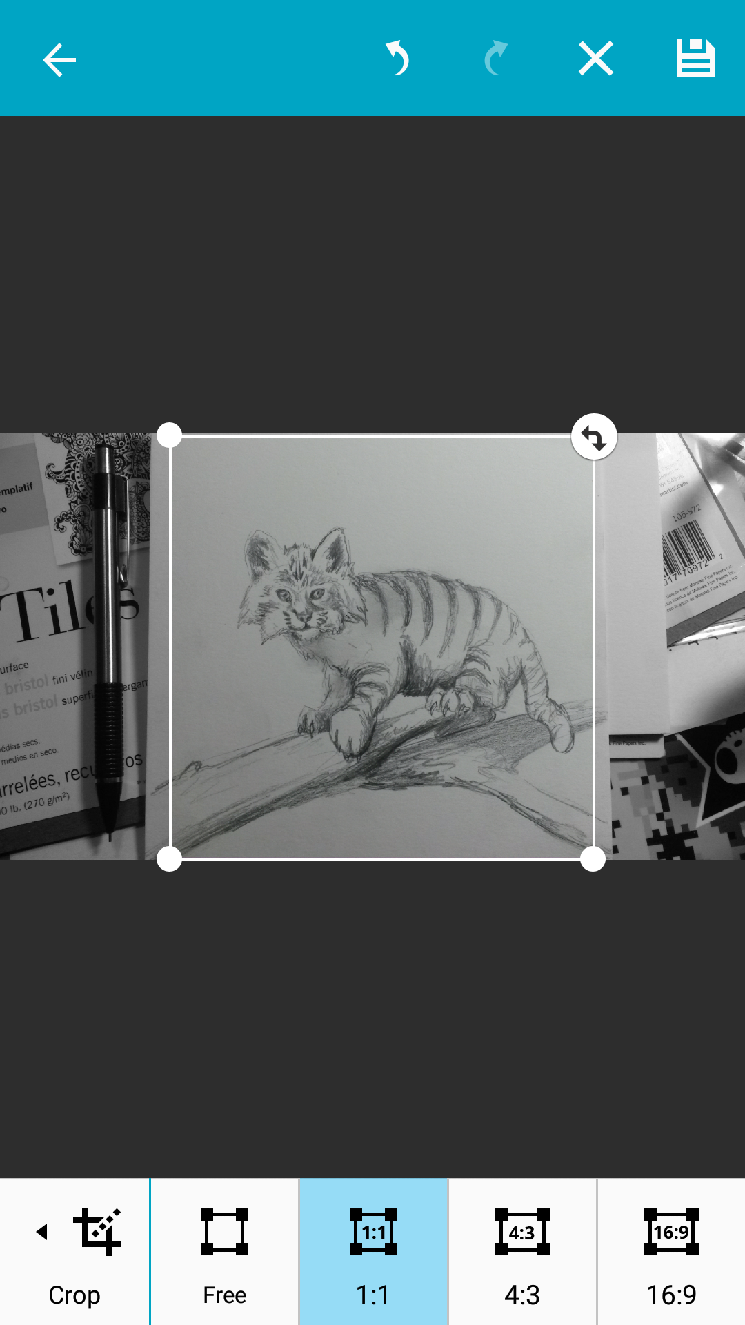 OK it is not perfect and it was only a 5-10 minute quick drawing and honestly that is what I want. I could spend hours making it just the way I want it but I am not here to make a masterpiece pencil drawing. So now on to digital. So begin by cropping. On Android phones which I use I always crop in Gallery under edit. I always set it to 1:1 because since it will be seen most heavily on Instagram I want it to be in the dimensions it requires so I don’t have to cut into anything I do later.