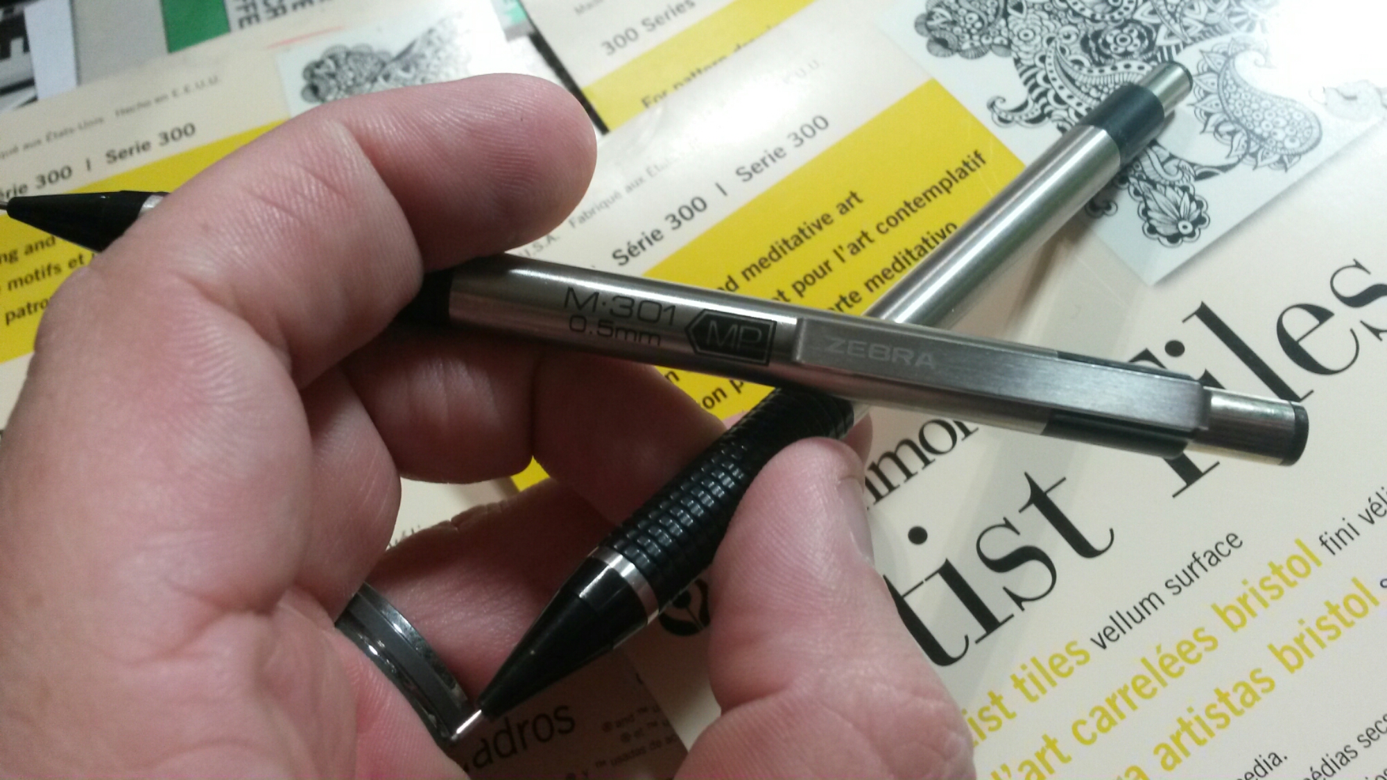 For quick sketches I always use the M301 .5mm Zebra. It’s versitisle cheap and moves easily in the hand for that quick shift of how you hole the pencil. The next thing I do is two things: I pull up references of what I want to draw (typically historical time line examples of character evolution) usually a simple Google search or pulling a book off my shelf and the second is I grab theses helpers.