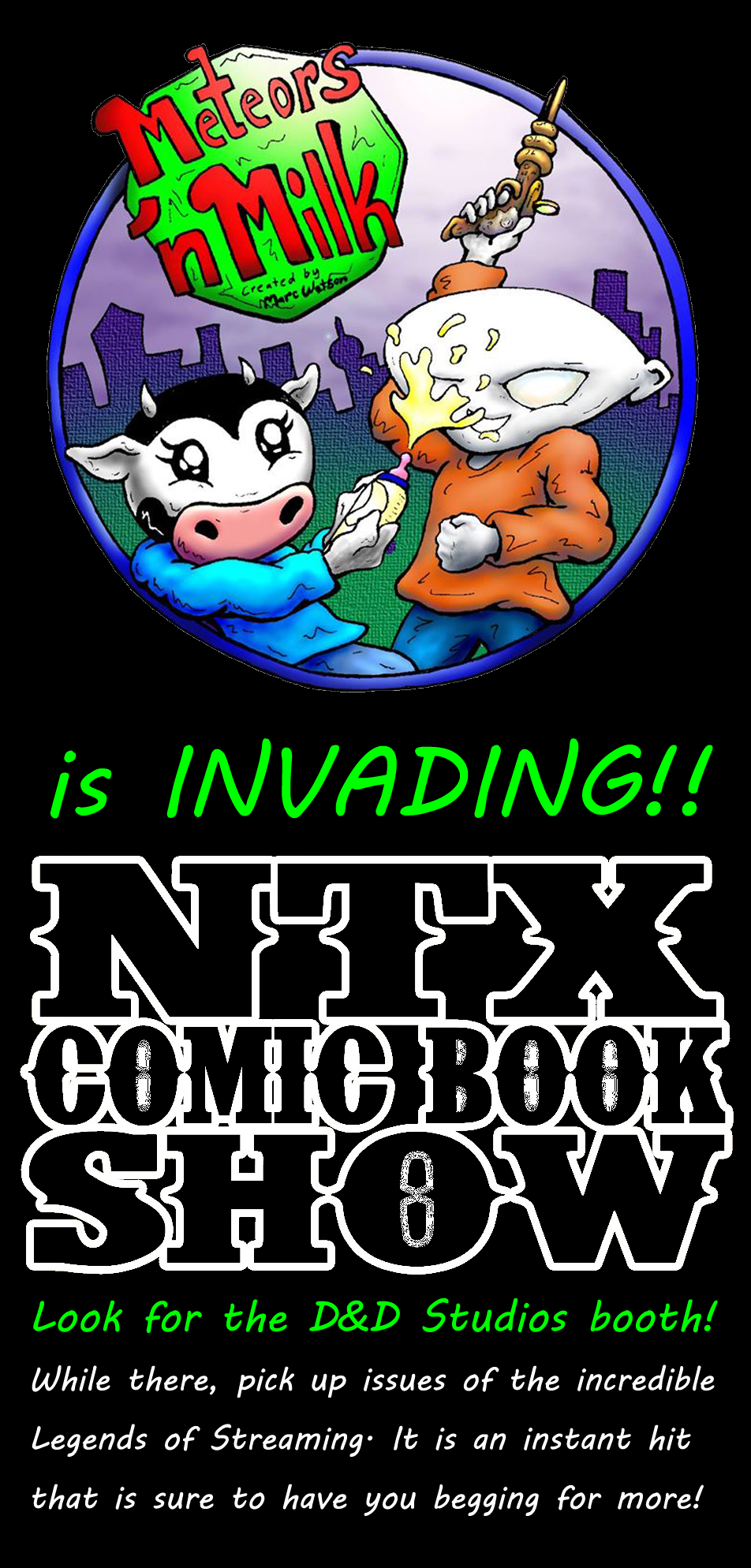 If you are in the Dallas/Fort Worth area then male sure that in 10 days your schedule is clear. Meteors ‘n Milk will be invading North Texas Comic Con the 28th and 29th! I will have the last of my stock of the full color 60 page meteors n milk, as well as Suicide Sam, and sketch covers. Look for D&D studios and I can’t wait to meet my DFW fans! See you in 10 days on to everyone else I will see you on the next page…