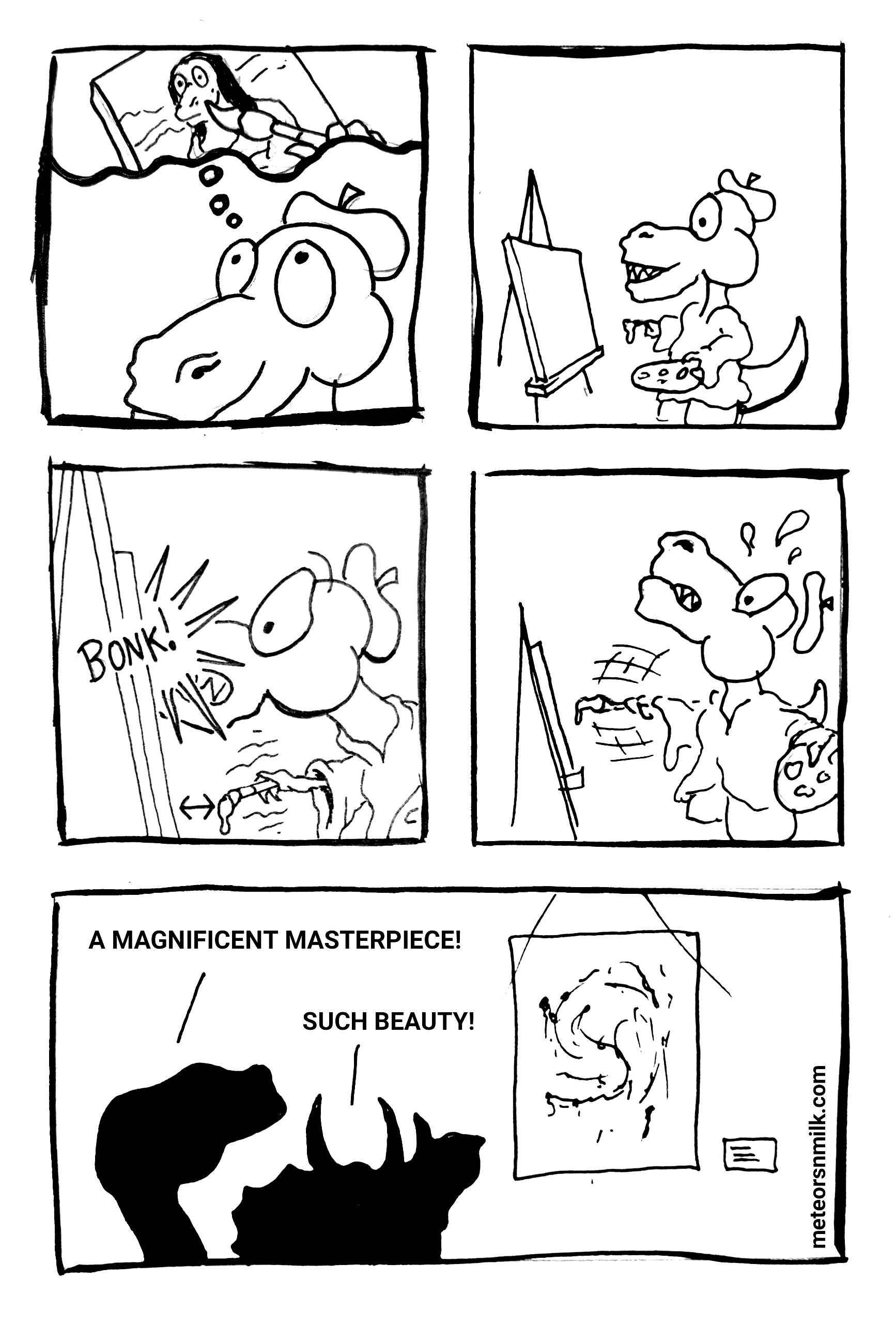 So Inktober is now into day 3 and I have to ask, are you following the daily posts on Tapas? Every day I am posting a new Suicide Sam and Creatively Cretaceous as well as every Wednesday and Saturday a new Meteors n Milk! I have more comics coming at you then ever before so seriously what are you doing not following along and reading these free daily chuckle and adventure? Don’t feel bad just click on the link and get started.