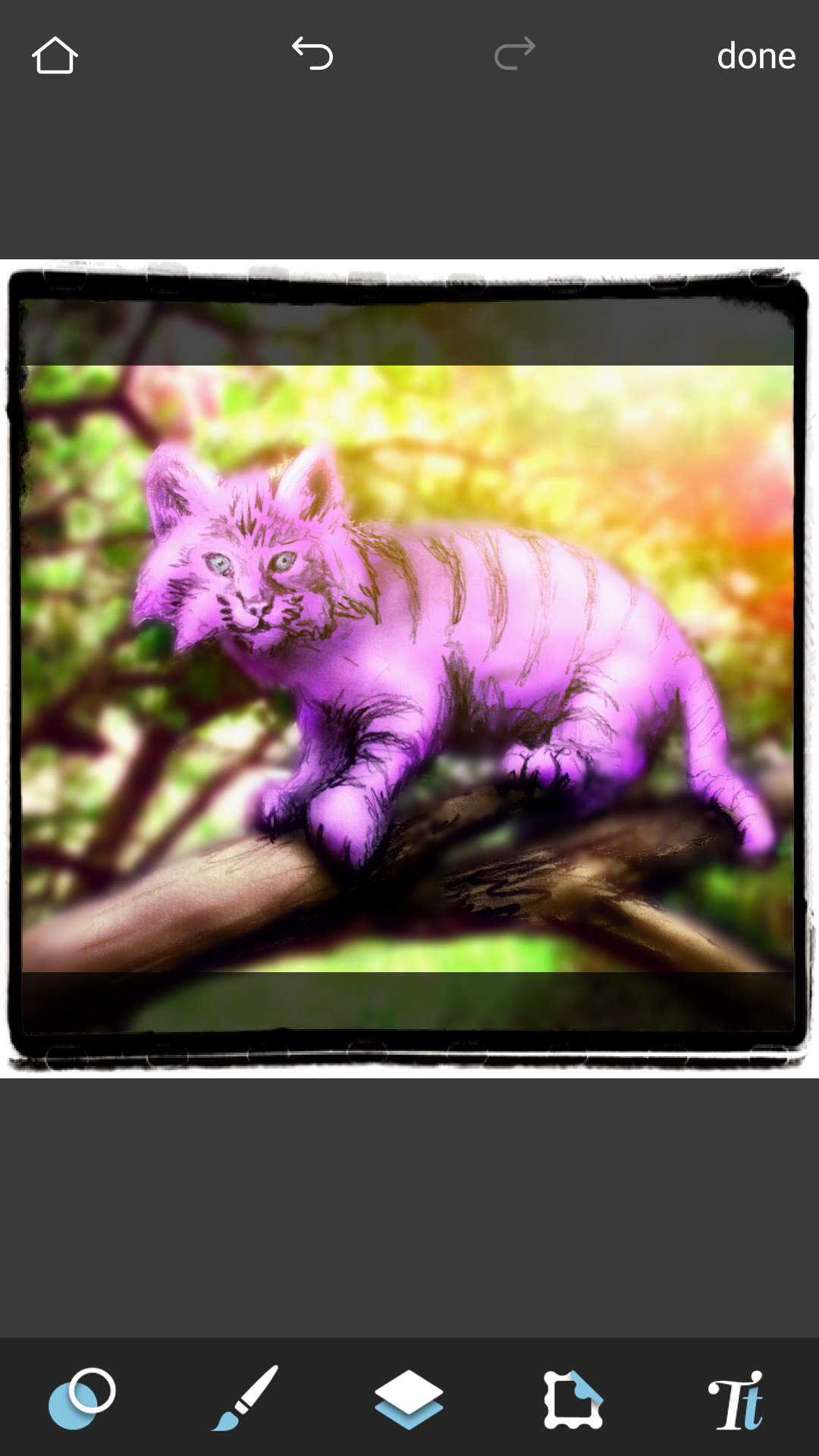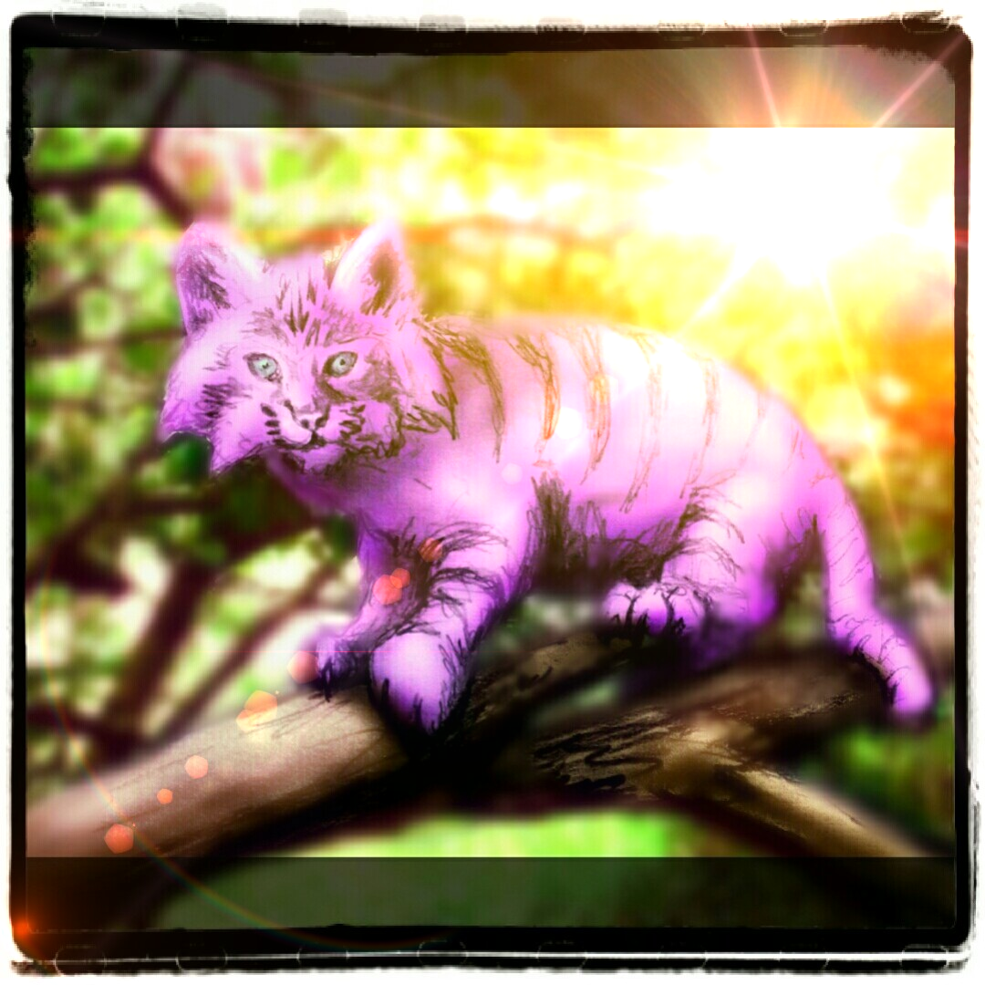The sun is pretty bright shinning down on our warm and fuzzy Cheshire cat. I did a couple touch ups and gave him green eyes for this too using the same methods you have learned. Here is the before and after so you see the initial drawing compared to what was done with a couple apps on a phone.