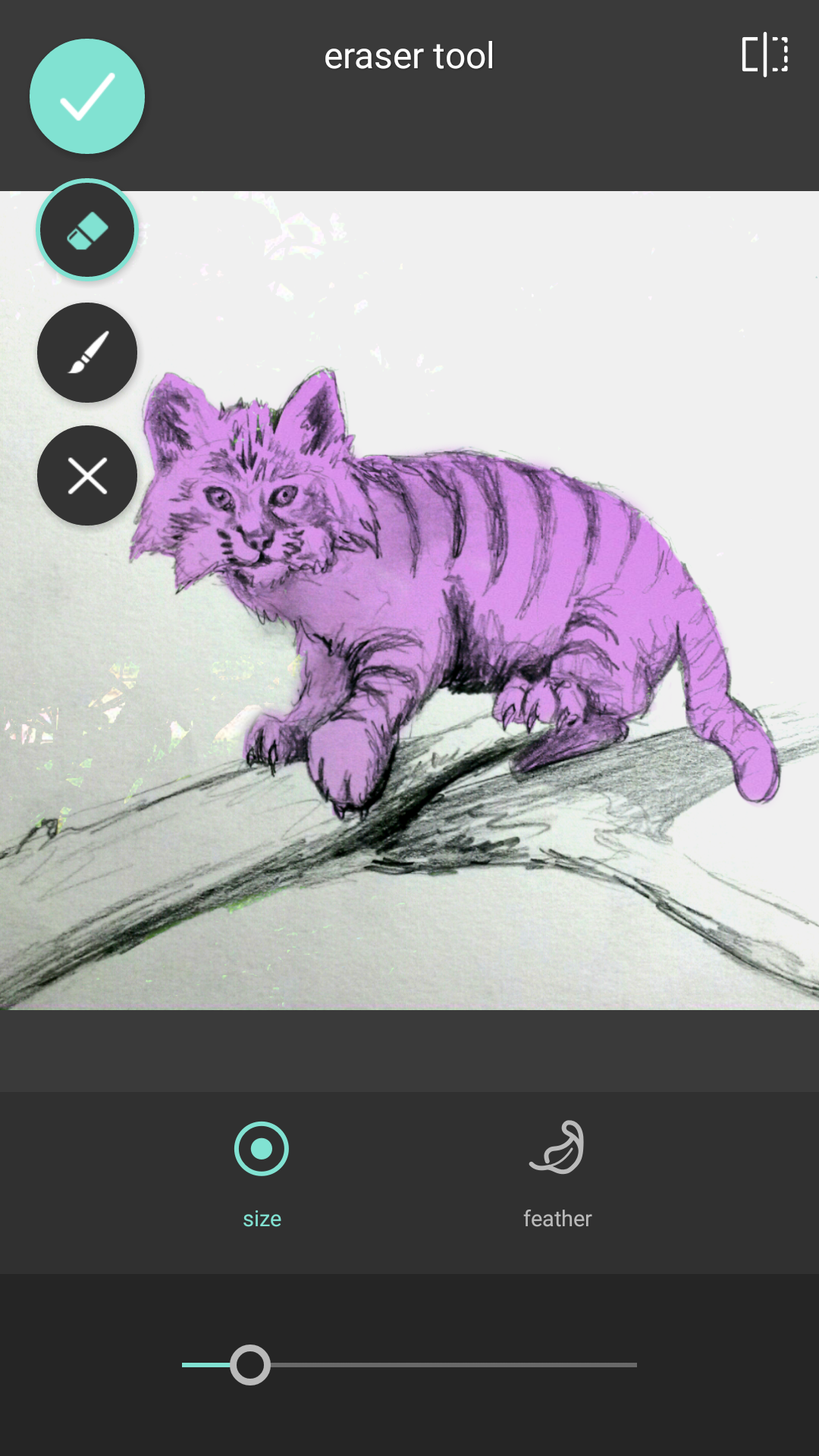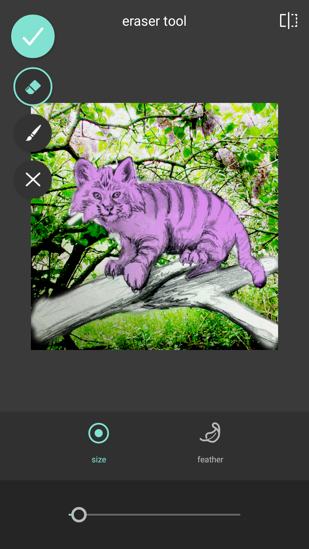 You will see something like this start to appear. When you are done but like me you will inevitably end up with coloring outside the lines like this. You can easily switch back to erase and adjust.
