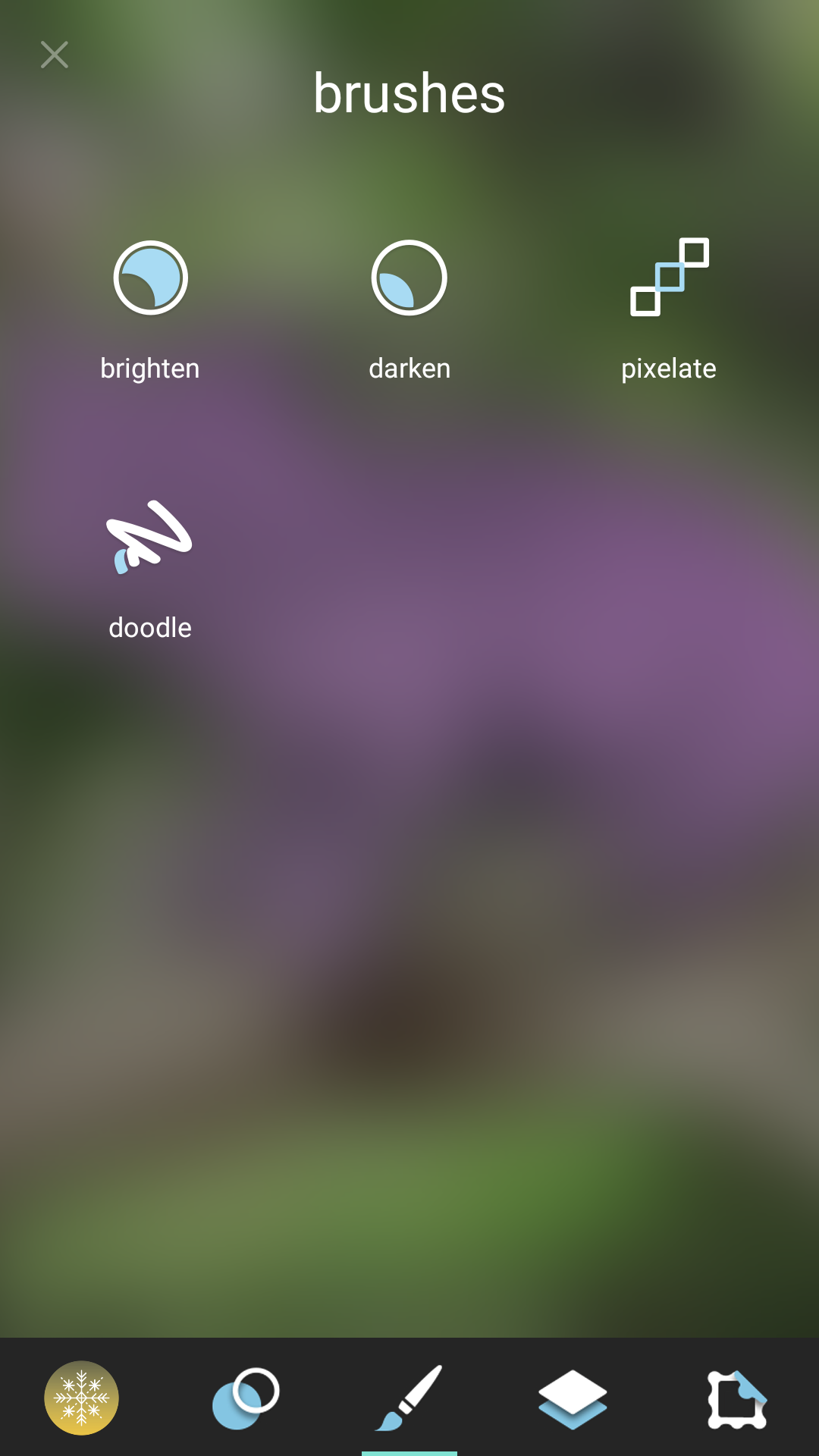 Okay now see that double circle second to left on the bottom? That is where all your standard image adjustments are that you expect in photoshop like apps. Under “adjustment” you will find the usual contrast, highlight, saturation, vibrance, saturation, exposure, etc. So first I turn the shadow dial left into the negative and the highlight to the right to positives. This widens the shading curve that was most likely minimized by your picture being taken on a phone in less than ideal lighting. I also play with contrast a little but you have to be careful here because this app likes to blow out detail quickly and you end up with over exposed images. So when you made all your adjustments hit the check mark on the right to save all the adjustments you just made.