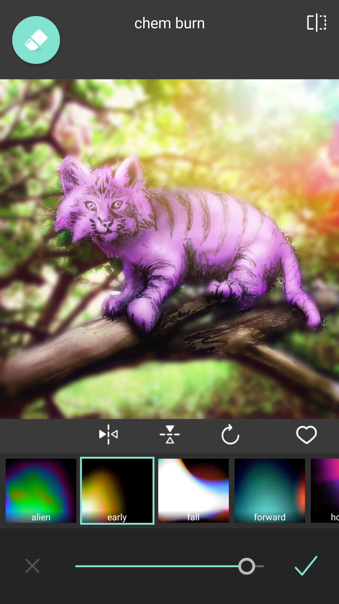 Here we see the horizontal flip giving the cat a different look. Once you like the coloring click on the eraser icon at the top left.