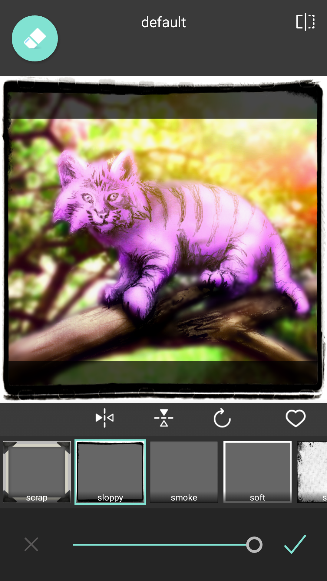 Now notice here something really cool. I can control the translucency of the frame! Sliding to the right makes it solid black but I like the framing without losing part of the drawing I did so I played with it till I found the right balance. I also have to point out that the eraser tool is still there meaning if i wanted to erase out parts of the frame that is an option. While I won’t do that for this project there are so many cool scenarios you can use that erasing tool on frames for awesome effects.